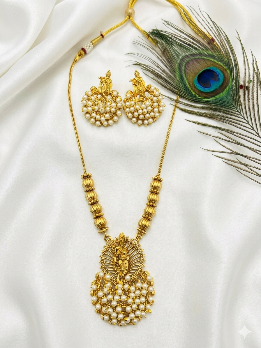 Paired with matching pearl-detailed earrings, this set is ideal for weddings, festive occasions, and traditional celebrations, effortlessly complementing sarees and ethnic attire.